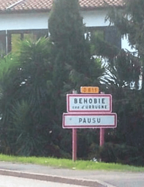 À l’entrée de Béhobie, depuis fort longtemps, le panneau PAUSU bénéficie d’un plus grand cadre que le panneau écrit en français. Est-ce pour cela qu’il ne fut jamais démonté ?