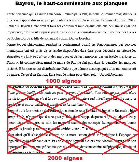 Cet épisode fait écho à ma propre expérience lorsqu’en 2014 je me retrouvais élu de ma commune dans l’opposition. Le maire autocrate patenté avait décidé que dans le bulletin municipal* 2 500 signes seraient attribués à l’expression de sa majorité et que notre groupe ne disposerait que de 450 signes. Cet article du règlement intérieur fut heureusement retoqué par le préfet des Landes. Contraint et forcé le maire nous concéda 1 250 signes, ce qui n’est pas le Pérou, avouons-le. Pour compenser cette quasi censure nous avons à l’époque décidé de rédiger à nos frais et de distribuer tous les deux mois aux 3 500 foyers, une lettre recto verso certainement plus lue que la gazette municipale. Épilogue : en juin 2020 notre groupe remportait les élections et le maire battu refusait de siéger dans l’opposition, certainement persuadé de ne pas y trouver une tribune à sa mesure.