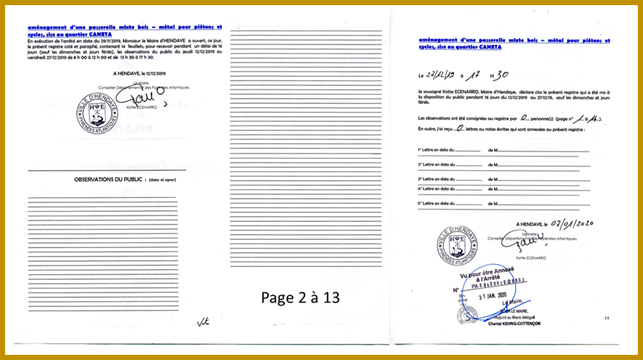 Sans en être autrement surpris, le maire conclut : « Je soussigné Kotte ECENARRO, Maire d’Hendaye, déclare clos le présent registre qui a été mis à la disposition du public pendant 16 jours du 12/12/2019 au 27/12/19, sauf les dimanches et jours fériés. Les observations ont été consignées au registre par 0 personne(s) (page n°1 à14)-En outre, j’ai reçu 0 lettres ou notes écrites qui sont annexées au présent registre : »