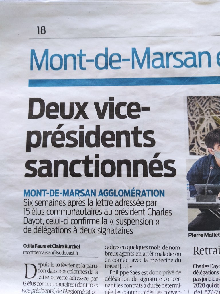 La vigilance de RamDam fait une première victime : Pierre Mallet vient d’être destitué de ses fonctions de vice-président de l’Agglo du Marsan.