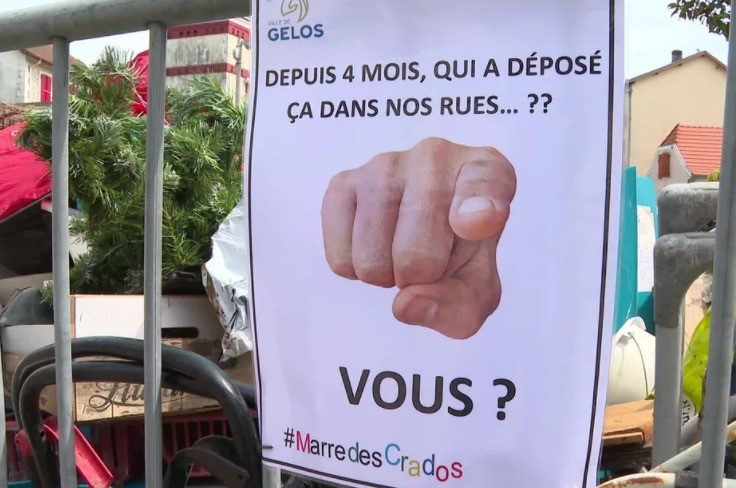 La saleté, ça commence à bien faire à Gelos (Pyrénées-Atlantiques). Exaspéré par l’accumulation des déchets dans sa commune et les incivilités répétitives de ses concitoyens, le maire de Gelos, Pascal Mora, a décidé de frapper fort et a fait déverser toutes les ordures ramassées ces derniers mois sur la place publique pour dénoncer le comportement de ses administrés et faire respecter «la liberté et le bien-être collectif » Une opération accompagnée d’une campagne d’affichage offensive, avant de passer à la répression a prévenu l’édile.