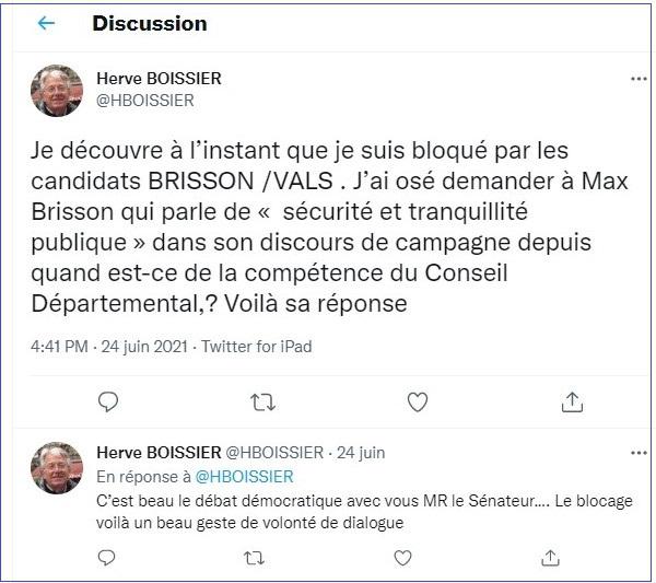 Le sénateur, qui est un homme d’expérience, puisqu’il en est à son cinquième mandat de conseiller départemental, au lieu de disserter, a bloqué celui qui osait le contredire sur Twitter. Pas très glorieux, tout cela…