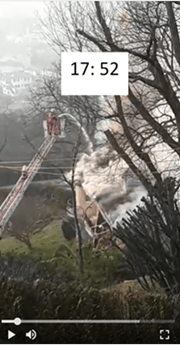 17 h 15 les pompiers d’Hendaye sont sur place , déploiement des tuyaux, branchement à la borne, mais… « problème d’alimentation d’eau » « FPT SJL insuffisant » [Fourgon pompe avec tonne d’eau de Saint Jean de Luz]. « Je demande un porteur d’eau » .