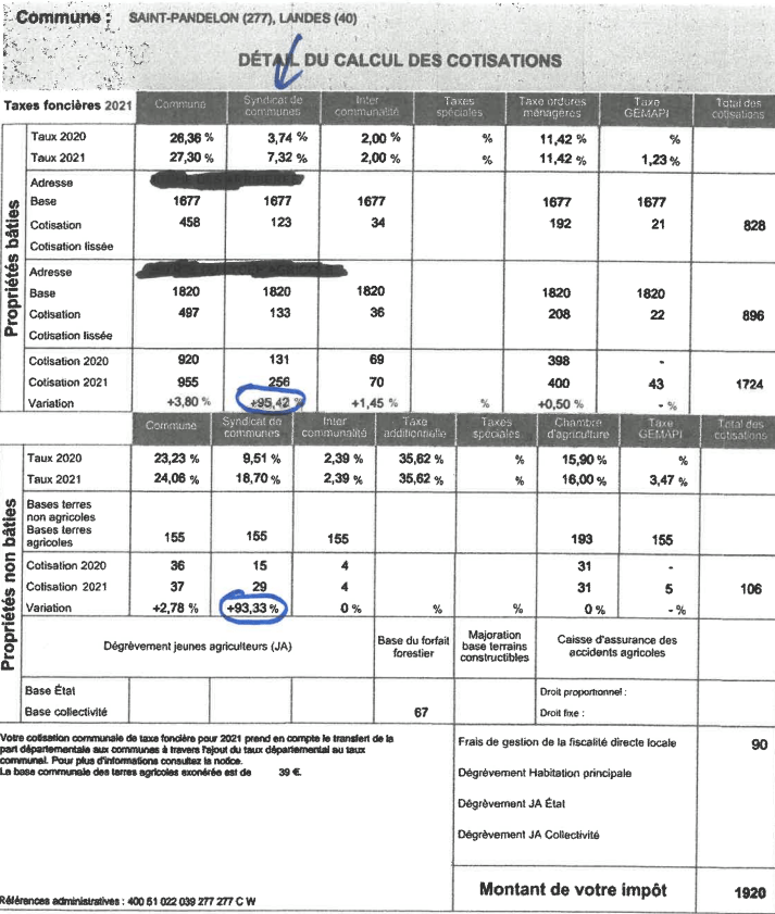 La multiplication des colonnes sur votre avis d’impôts fonciers traduit la multitude des cas de figures et bien sûr nuit à la compréhension de ce que paye le contribuable .