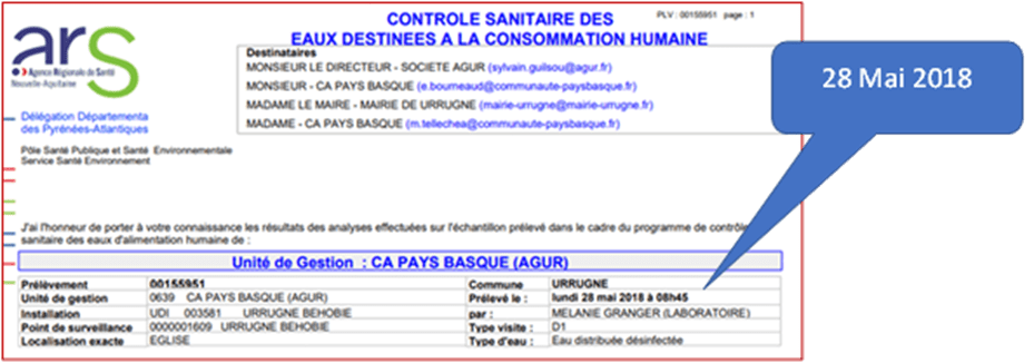 Et enfin le contrôle sanitaire des eaux destinées à la consommation humaine date du 28 mai 2018 … 4 ans déjà ! comme le temps passe vite.