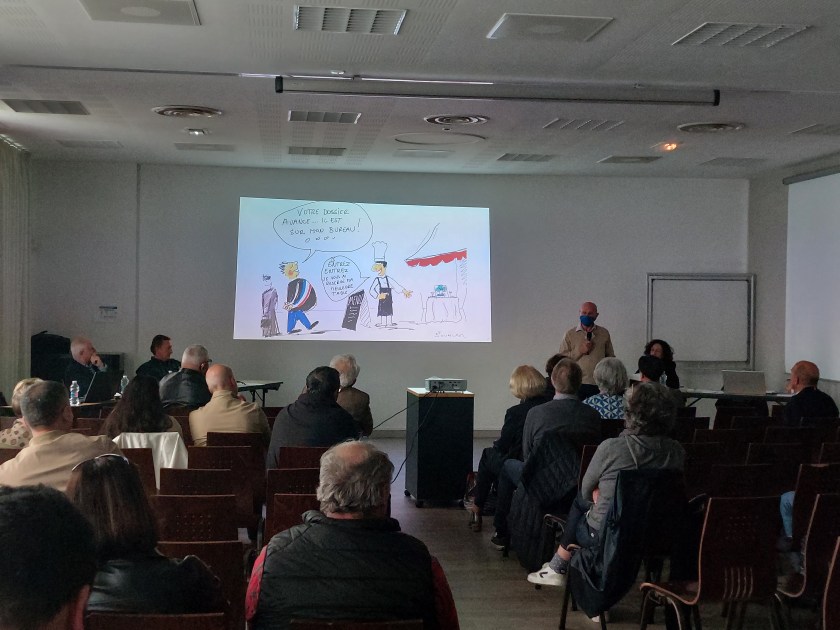 Nous remercions donc vivement pour leur courage et leur franchise Marie-José Mialocq, maire d’Arbonne et membre du conseil permanent de l’Agglo, Emmanuel Alzuri et Marc Saint-Esteven, maires de Bidart et Villefranque, membres de l’Agglo et du conseil départemental, Jean-Michel Iratchet, ex conseiller régional du Front national, Maud Cascino et Fabrice Sébastien Bach, adjoints à l’Urbanisme et au Commerce de Biarritz, tandis que l’ex-députée Colette Capdevielle, retenue par le mariage d’amour (ou de raison ?) entre France Insoumise et le PS avait dû se décommander en dernière minute.