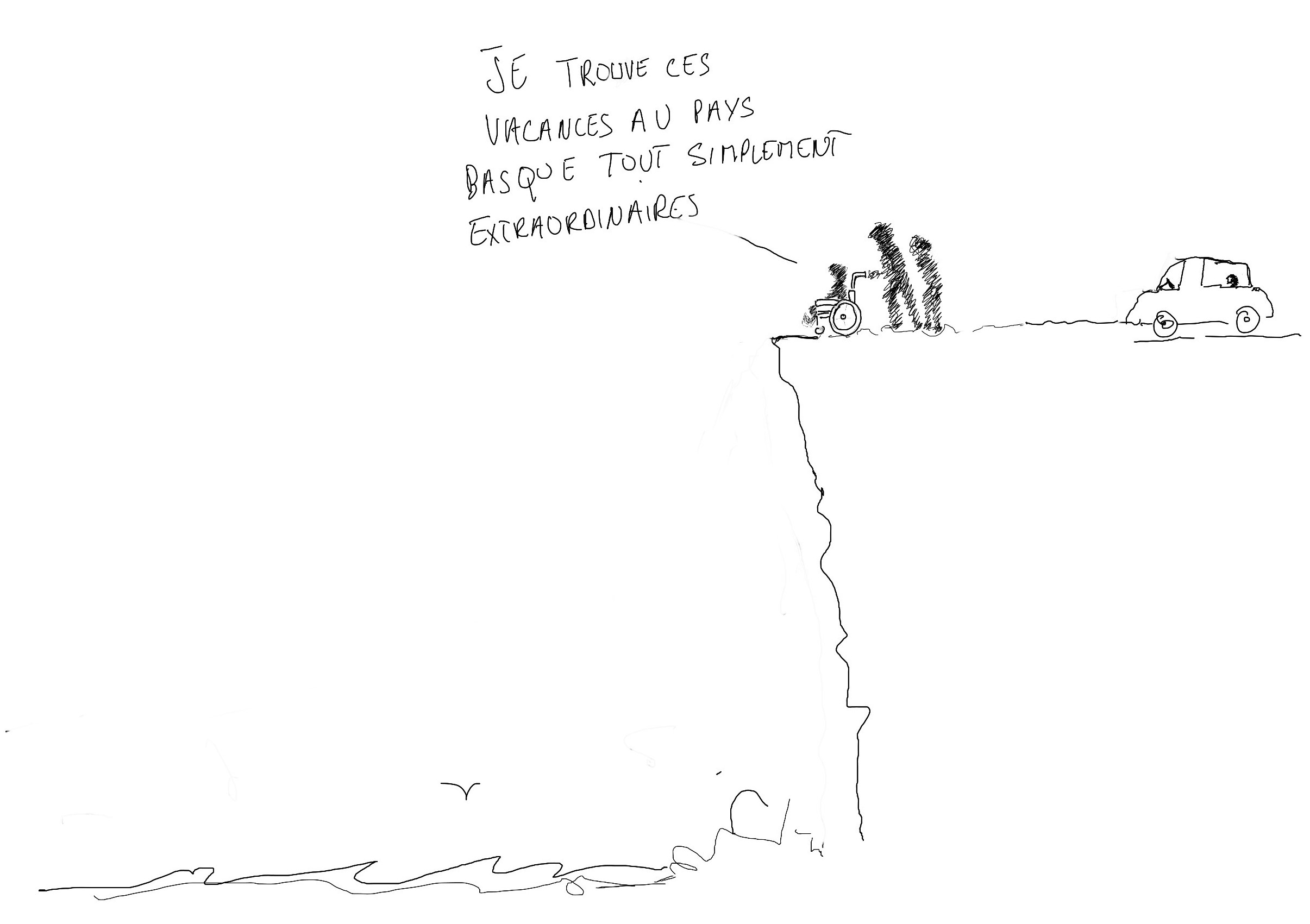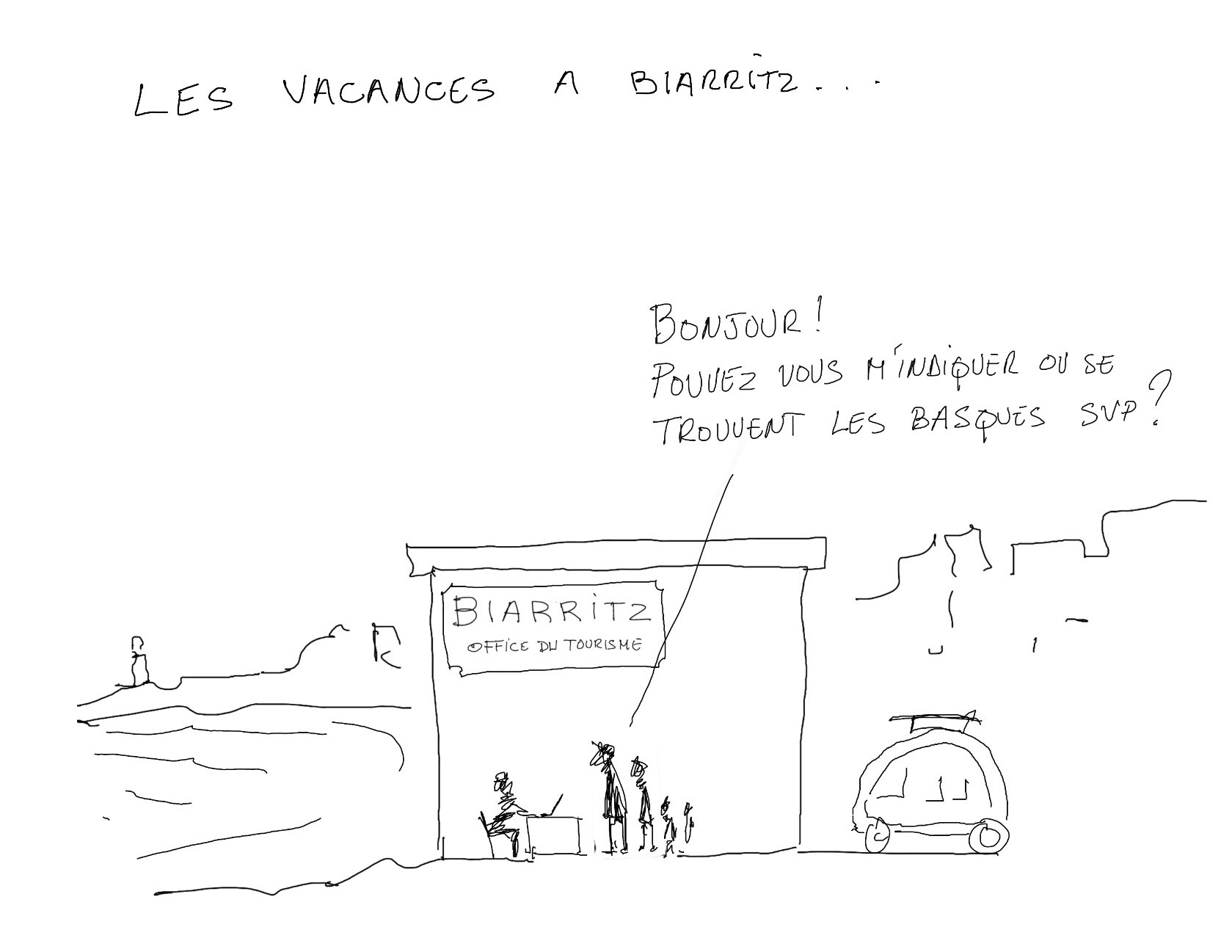 Vous pouvez aussi faire un petit dessin sur les odeurs écoeurantes des égouts au bas de la rue de Madrid et de l’avenue de la Milady depuis la pharmacie jusque parfois jusque sur la plage de la Milady, ainsi que du tout nouveau complexe Nemea qui crache autant que l’on veut des vapeurs fort désagréables venant de leur système de ventilation que vous prenez en pleine figure à moins de changer de trottoir si d’aventure trottoir il y a aussi bien côté Milady à cause de taillages à la serpe qui envahi la moitié du trottoir sinon plus et rue de Madrid par le stationnement quasi permanent de voitures de l’hôtel, de la résidence Eugénie et de la résidence de Marbella qui prennent la part belle sur les trottoirs du côté de la voie descendante ou la circulation y est dense et rapide. De l’autre côté on ne sait plus qui s’appelle piste cyclable ou trottoir aussi bien dans le sens descendant que montant. C’est là une image fort désastreuse de Biarritz. J’ai oublié de parler du passage pour piétons de cette rue ou parfois il faut beaucoup de courage pour traverser. Un véritable coupe-gorge nauséabond qui par pur bonheur n’a pas trop d’accidents pour le moment. Cette zone et malgré les récentes mesures de la Ville est également infestée de crottes de chien et un magnifique repère à chats dont on ignore la raison et ce tout au long de l’année et pire encore en pleine en saison,