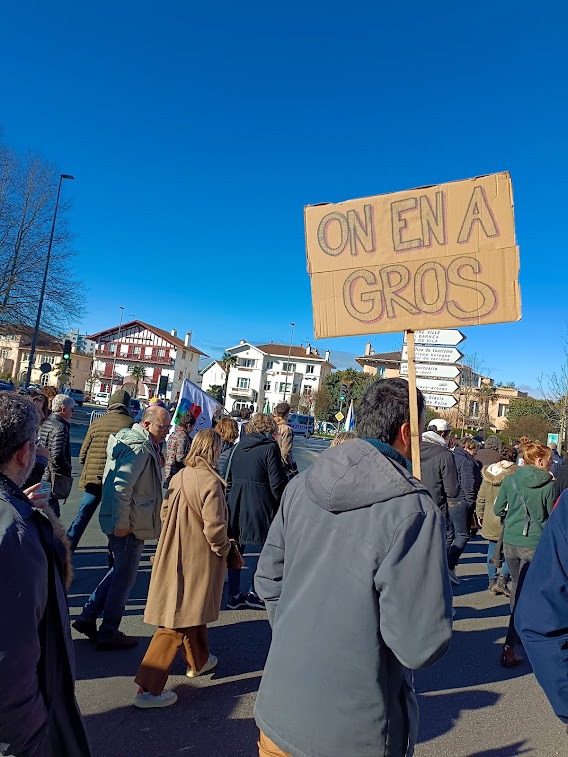 Très impressionnante manifestation à Bayonne mais aussi très pathétique tant le désespoir de finir ses jours dans la misère et la souffrance était omniprésent. Après le mot « retraite », le second le plus employé était « mort » montrant la réaction à l’inhumanité des discours de nos élus.