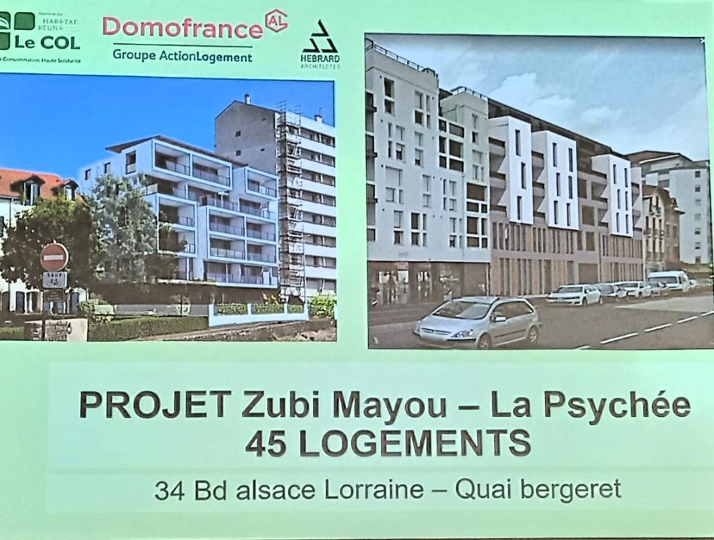 Dans la définition du BRS (Bail Réel Solidaire), il y a social, soit, mais pourquoi Domofrance ne commercialise que des logements en accession à la propriété plutôt que d’inclure dans son projet de 30 appartements, une partie en location ? Et si en plus, on inclut à social, les mots solidaire et participatif, on touche le jackpot et on arrive à un projet innovant sur du foncier public : le projet de l’association Âge et Partage avec l’immeuble Zubi Mayou sous l’égide du COL.