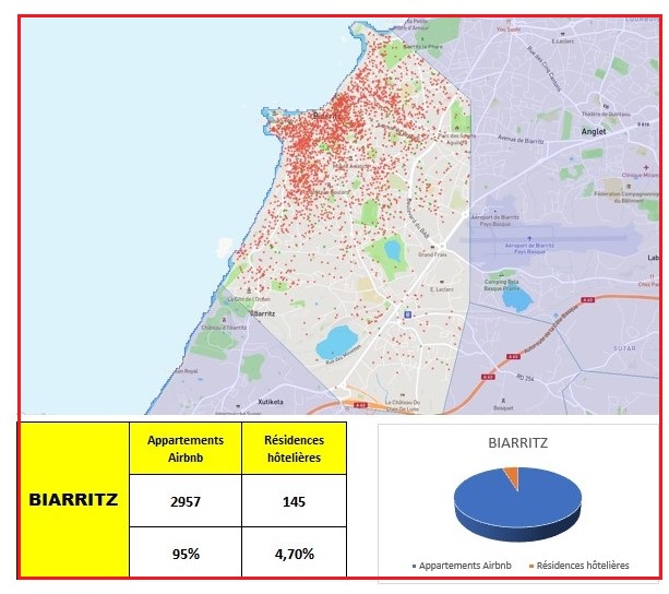 Alors que les élus ne nous donnent que des chiffres très parcellaires concernant leurs communes, RamDam 64-40 est ravi de pouvoir vous donner ville par ville les vrais chiffres du phénomène Airbnb et de pouvoir vous faire comprendre à quel point les résidences hôtelières, type Pierre&Vacances, Maeva ou VVF sont menacées avec ce qui peut s’apparenter à une concurrence déloyale.