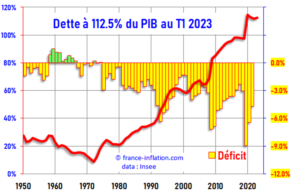 Oui, il s’est passé quelque chose d’important en 1973/1974 : le gouvernement Pompidou, Messer, Giscard, fit une loi interdisant à l’Etat de se financer auprès de la banque de France à taux 0 %. (article 25 de la loi du 3 janvier 1973). En conséquence l’Etat fut obligé – et est toujours obligé – de se financer auprès des marchés et banques privées qui, eux, ne prêtent pas à taux zéro. En plus du capital à rembourser il faut donc payer l’intérêt que réclame ces mêmes acteurs financiers privés. Ces sommes empruntées pour payer ces intérêts ne servent à aucun investissement.