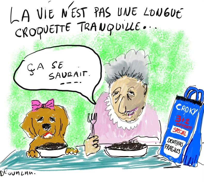 Certes, certains pauvres, a-t-on rapporté, en sont réduits à compléter leur repas avec la nourriture pour chien. Cet amendement les aidera, eux et ceux que la ponction de 4 milliards va encore appauvrir. Mais gare à l’effet domino, car les croquettes, c’est coriace, très vite il faudra envisager une réduction de TVA sur les dentiers.