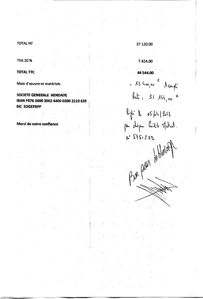 document 1&2) Facture du 24/03/2018 Construction DA SILVA SARL : 44 544 TTC
