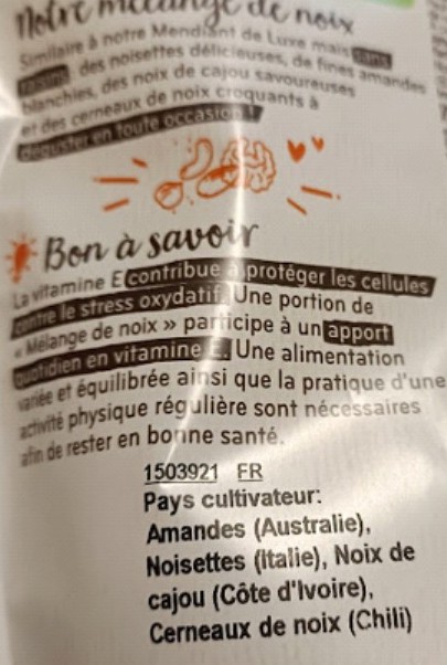 Sur un paquet de fruits secs apéritif : provenance des ingrédients :