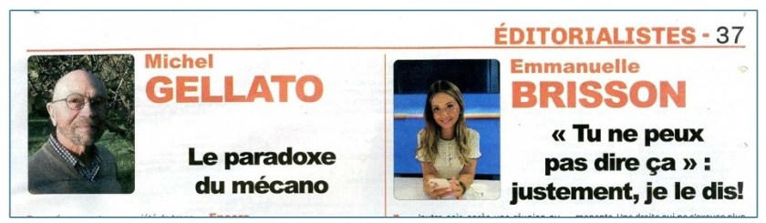 Est-ce pour stigmatiser mon grand âge que la Semaine du Pays Basque a accolé la chronique d’Emmanuelle Brisson, fringante jeune femme, à la mienne ?