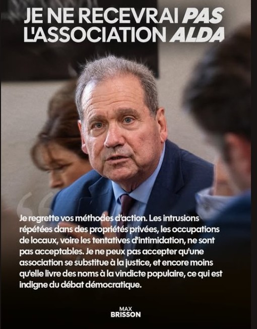 Mais depuis quand un élu de la République est-il autorisé à faire le tri entre les citoyens ou les associations du territoire dont il est censé s’occuper ? Dans un de ces jolis mouvement de menton qu’il affectionne, le sénateur Max Brisson, qui redoute toujours de ne pas paraître assez à droite, vient d’affirmer sur les réseaux sociaux qu’il refusait de recevoir Alda, leur reprochant des « intrusions répétées dans des propriétés privées, des occupations de locaux voire des tentatives d’intimidation ». Il pense à son copain Stérin ?