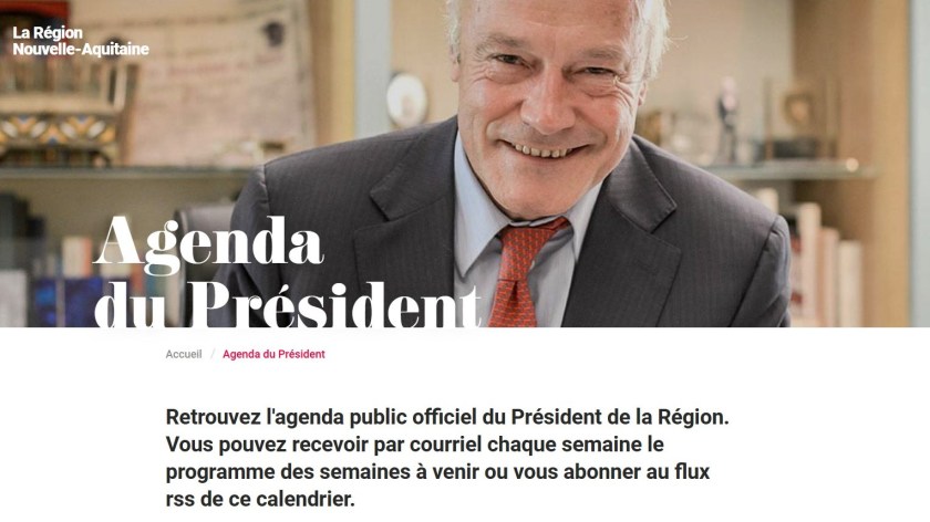 Facile, il suffit d’aller voir son agenda (https://www.nouvelle-aquitaine.fr/agenda-president)