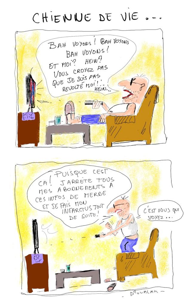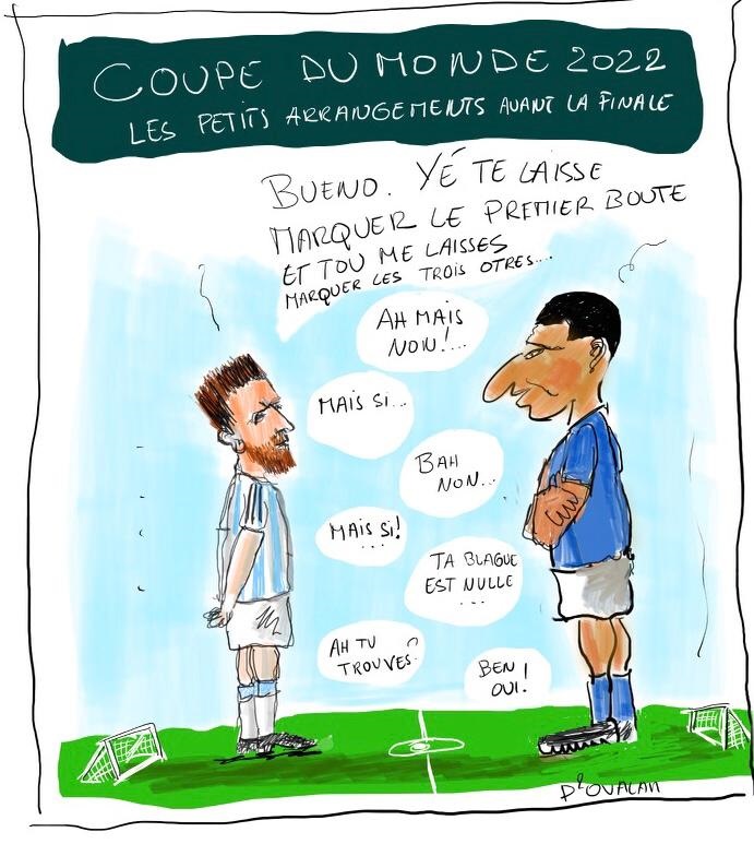 Immense artiste que le monde entier nous envie, le Docteur Oualam, après avoir été sollicité par tous les plus grands médias de la planète, a finalement accepté de rejoindre Jamais Trop de Ramdam, en se contentant modestement des salaires réunis de Neymar et M’Bappé. Vous retrouverez dans cet onglet l’ensemble de ses publications et les croquis que l’actualité lui inspire. Pour reproduire un de ses dessins, l’accord de l’auteur est nécessaire :